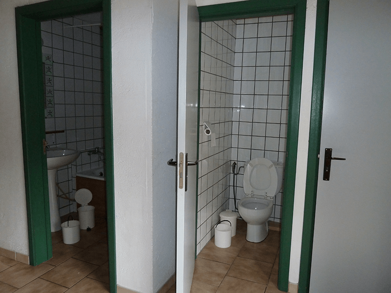 In totaal zijn er 6 badkamers, waarvan 3 met douche, 2 met bad douche en 1 met ligbad. Alle badkamers hebben ook een wastafel. Er zijn 6 toiletten (allen apart, dus buiten de badkamers).