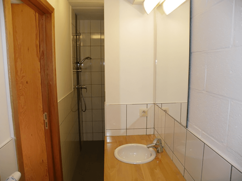Er zijn 11 slaapkamers, variërend in grootte: 2 persoons, 4 persoons, 6 persoons en 7 persoons. Drie van die slaapkamers bestaan uit een bovenverdieping en benedenverdieping. Dus je zou ook kunnen spreken van 8 slaapkamers. Deze 8 kamers hebben elk een douche, toilet en wastafel. En in het hele gebouw zijn nog 2 extra douches en 4 extra toiletten.