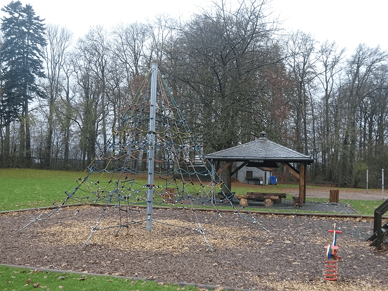 Buiten zijn een grasveld met picknickbanken, iets verderop ligt een volleybal/badmintonveld, er is een grote barbecueplek en er staan een paar speeltoestellen. Paviljoen B heeft een eigen parkeerplaats.