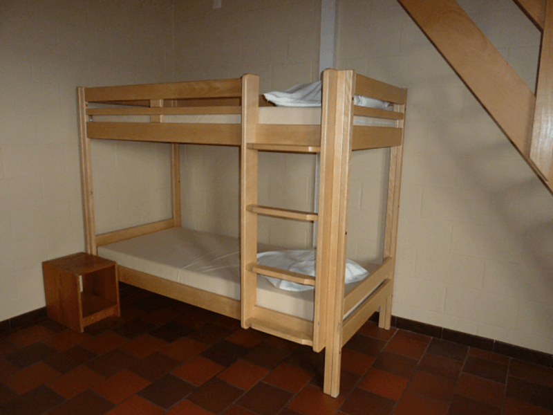 Er zijn 6 slaapkamers voor 6 personen. Elke slaapkamer bestaat uit 2 gedeelten: 2 stapelbedden beneden en op de open vide daarboven 2 eenpersoons bedden. De kamers zijn verschillend van grootte. Elke kamer heeft een douche, toilet en wastafel.
